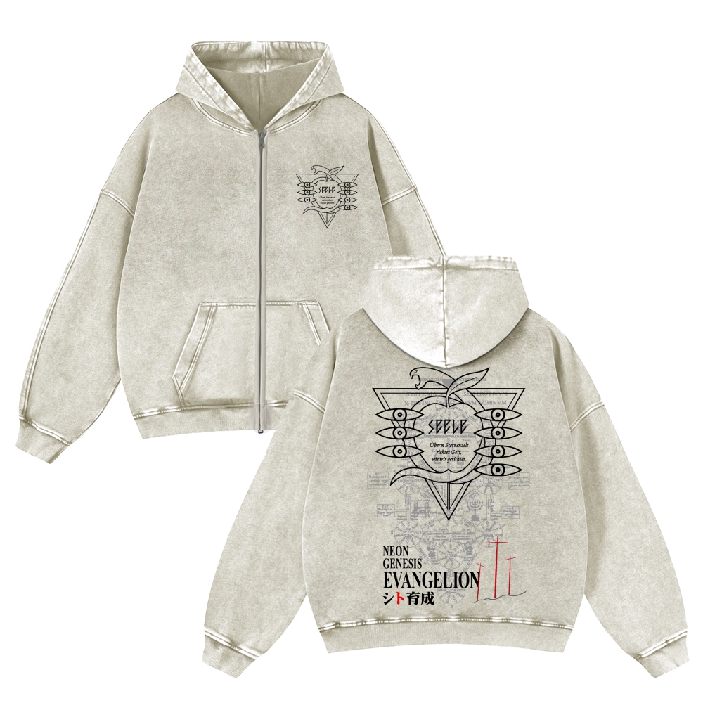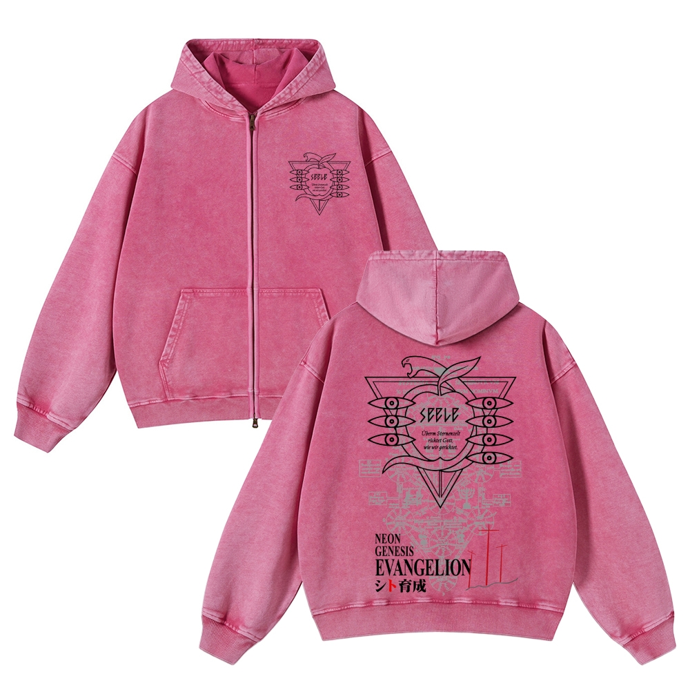Neon Genesis Evangelion Unisex Washed Cotton Zip Up Hoodie 2511029216